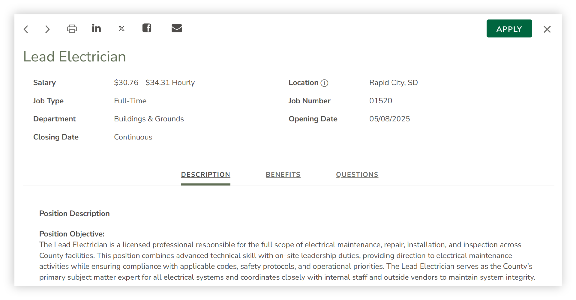Browse the listings to find a position that fits your interests. Click the job title, then click “APPLY” in the upper-right corner.