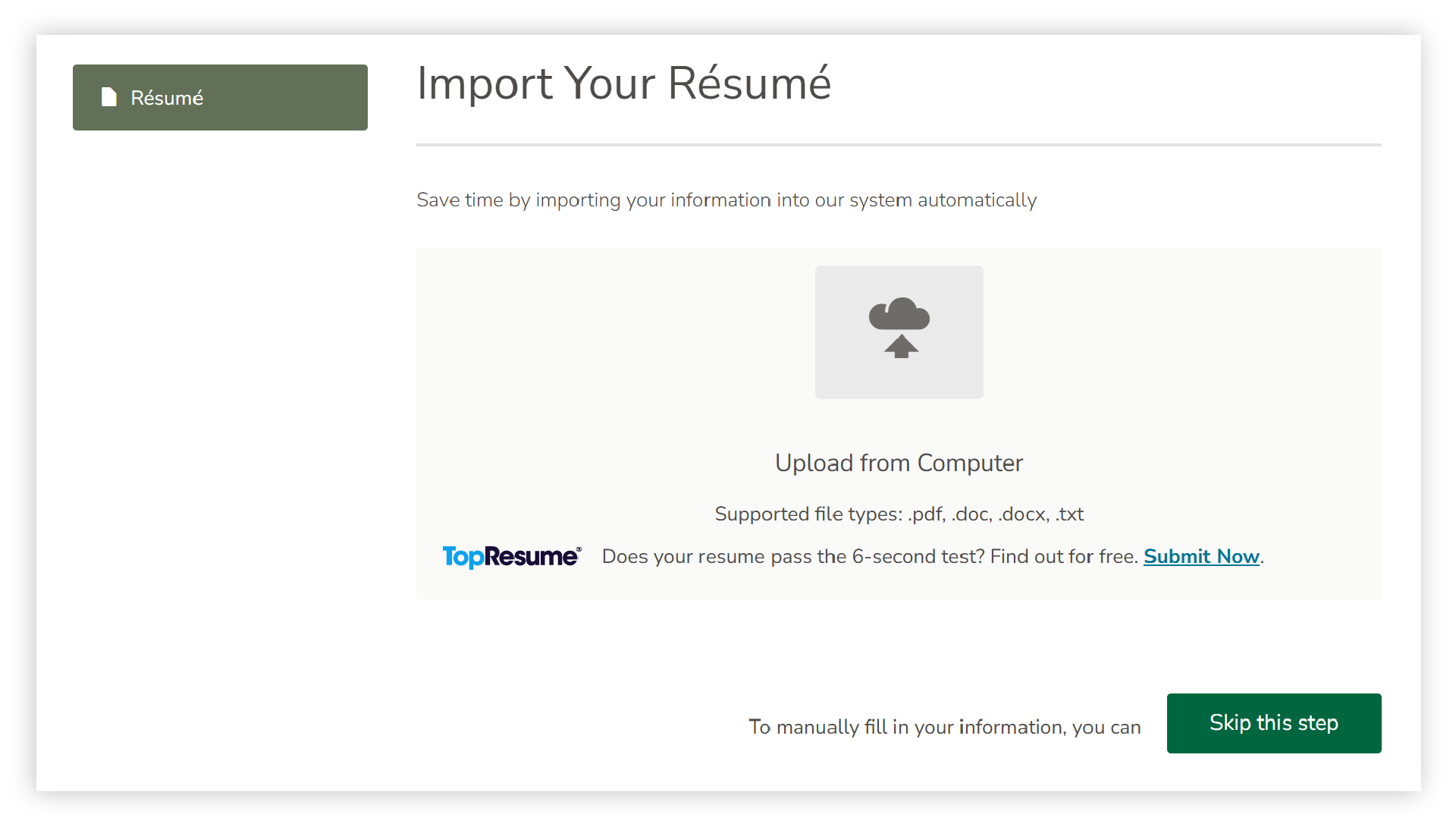 Note: Even if you upload a resume, you’ll still need to enter similar information in the next step.