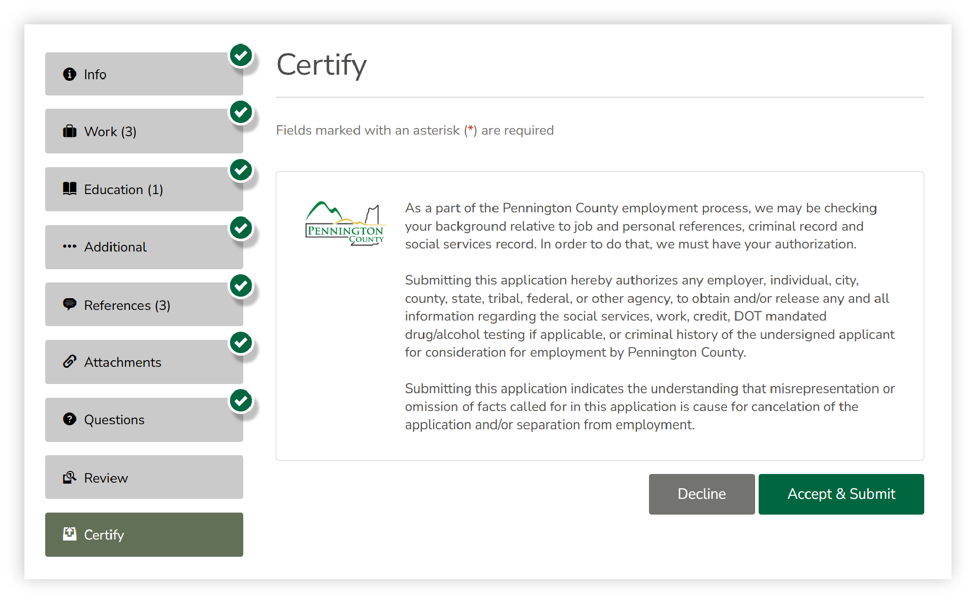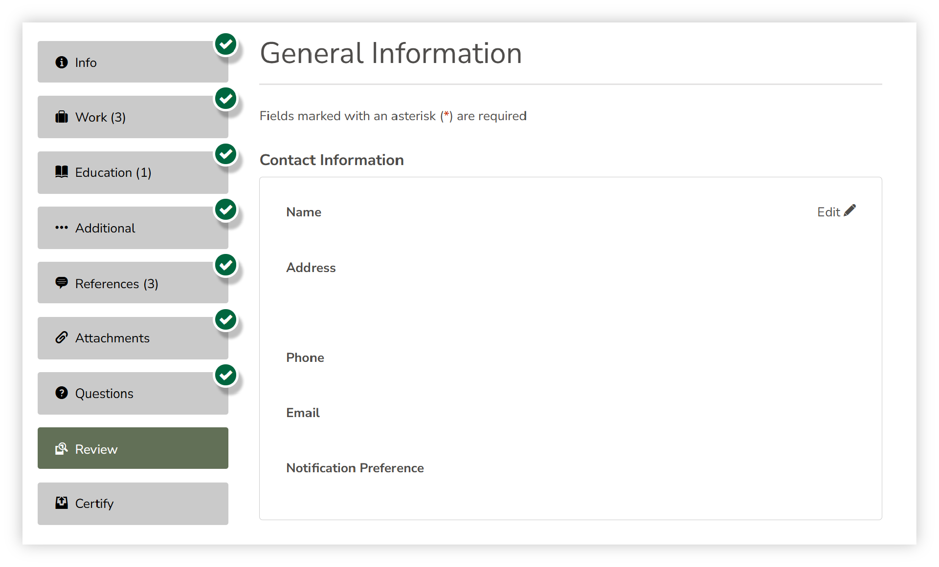 Here you will find a long list of all the information you added. Look over everything to ensure all details are accurate and complete before submission.